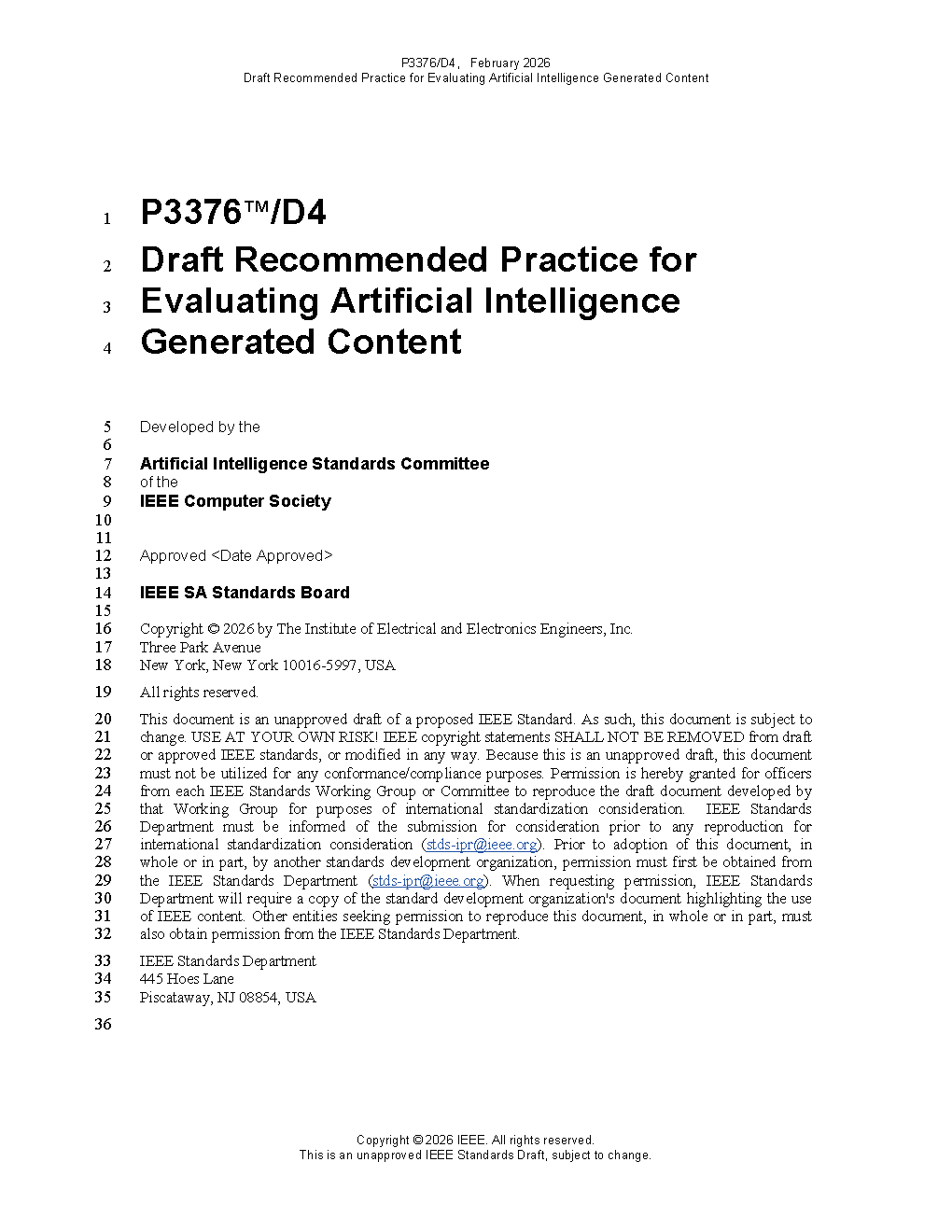IEEE Draft Recommended Practice for Evaluating Artificial Intelligence Generated Content