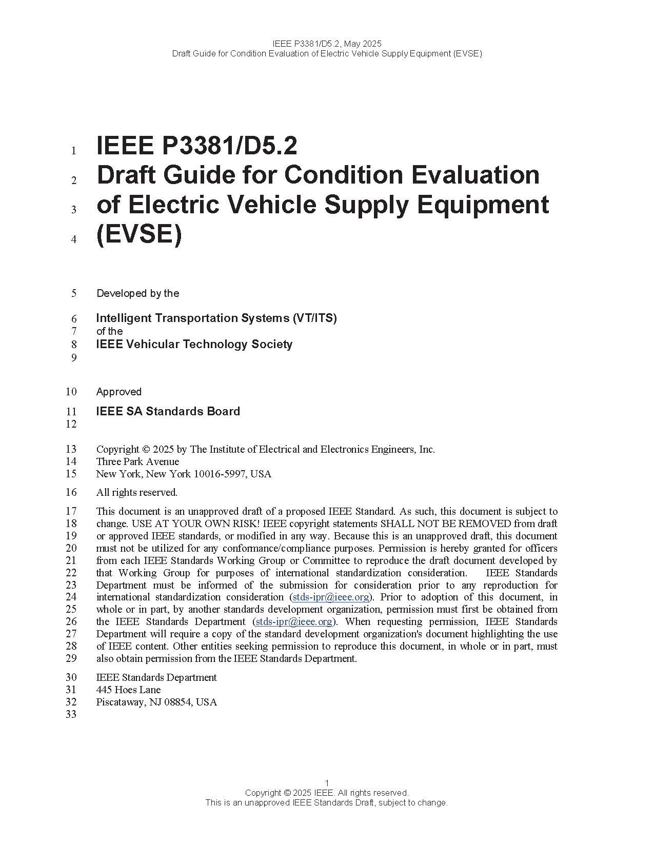 IEEE Draft Guide for Condition Evaluation of Electric Vehicle Supply Equipment (EVSE)