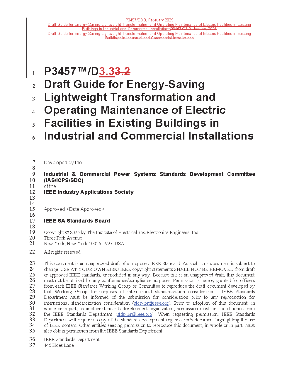 IEEE Draft Guide for Energy-Saving Lightweight Transformation and Operating Maintenance of Electric Facilities in Existing Buildings in Industrial and Commercial Installations