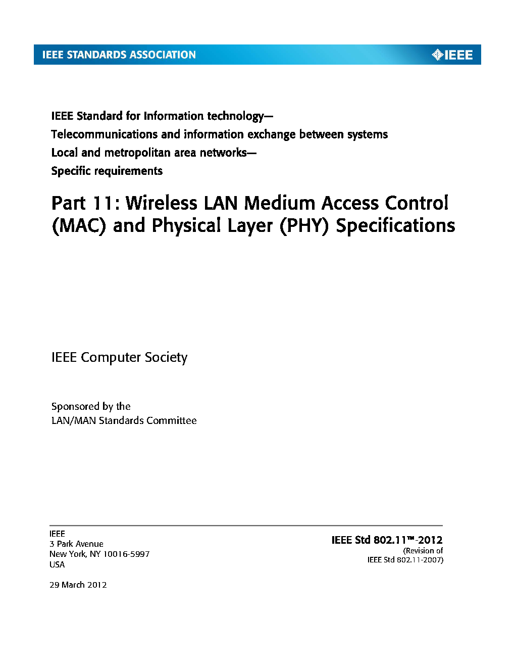 The purpose of this standard is to provide wireless connectivity for fixed, portable, and moving stations within a local area. This standard also offers regulatory bodies a means of standardizing access to one or more frequency bands for the purpose of local area communication.