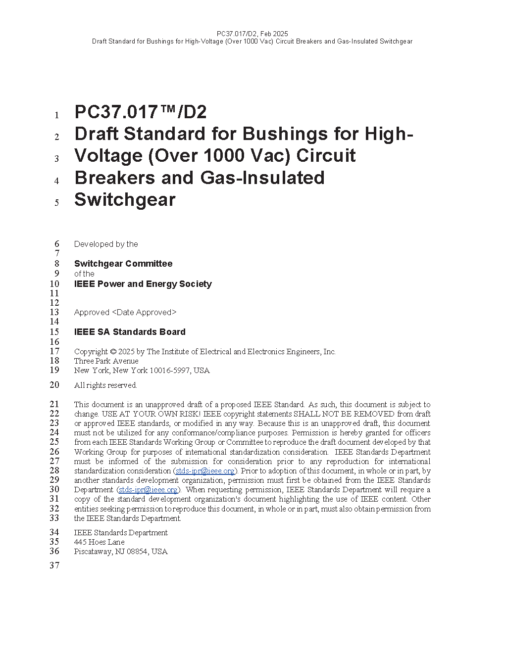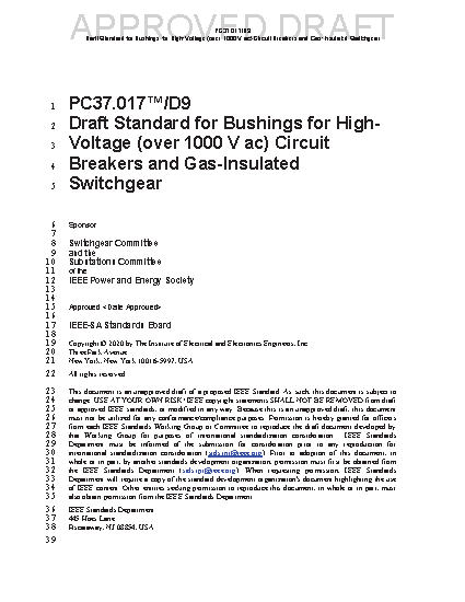 IEEE Draft Standard for Bushings for High-Voltage (Over 1000 Vac) Circuit Breakers and Gas-Insulated Switchgear