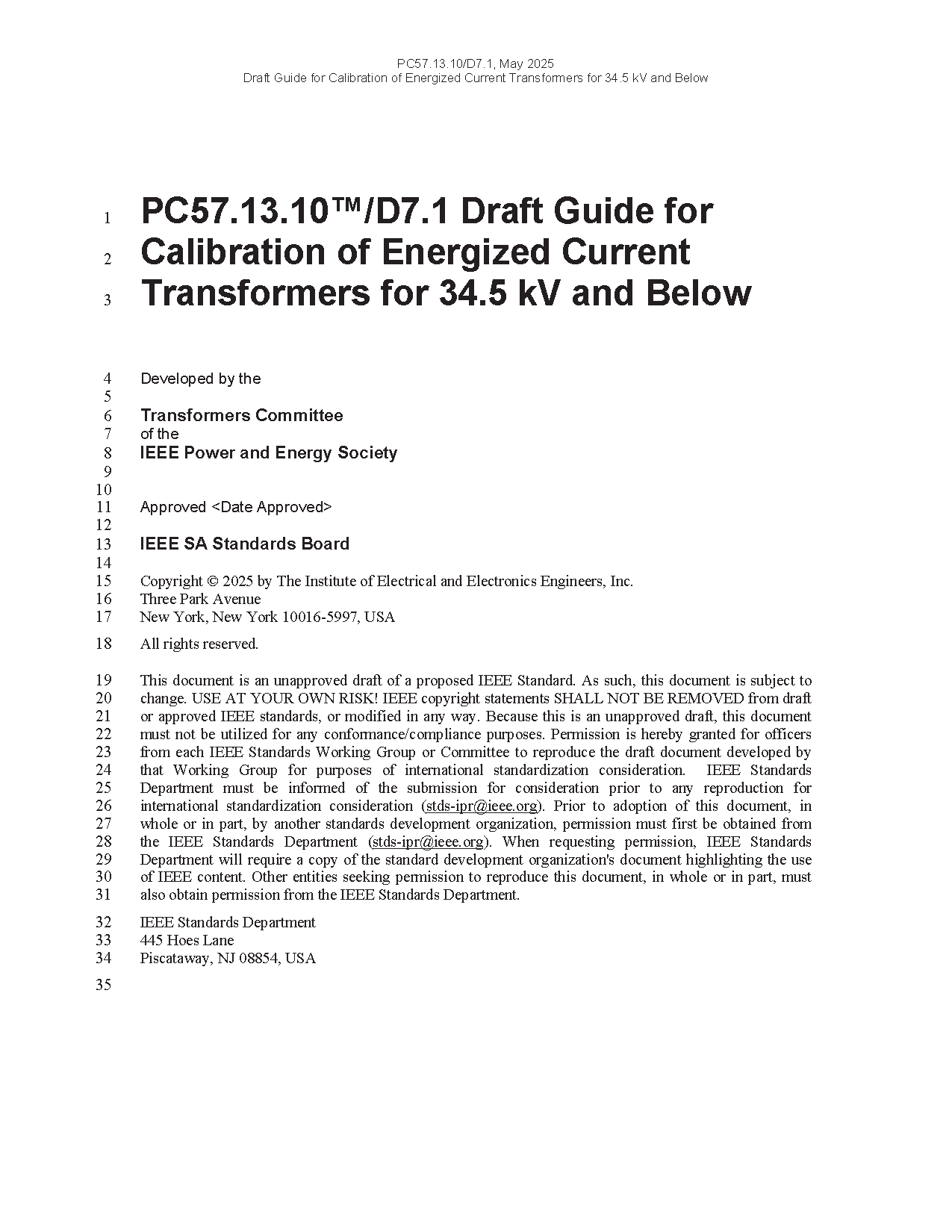 IEEE Draft Guide for Calibration of Energized Current Transformers for 34.5 kV and Below
