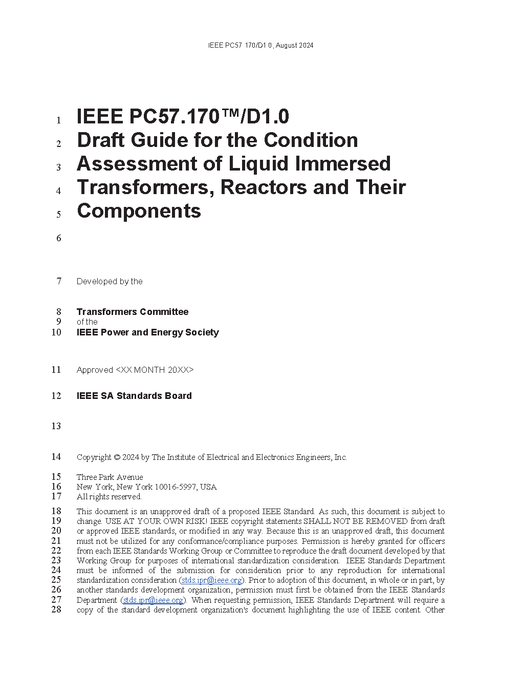 IEEE Draft Guide for the Condition Assessment of Liquid Immersed Transformers, Reactors and Their Components