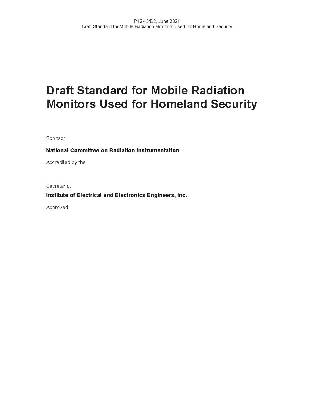 IEEE Draft Standard for Mobile Radiation Monitors for Homeland Security