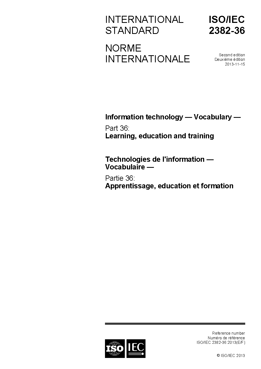 ISO/IEC 2382-36:2013 Information technology - Vocabulary - Part 36: Learning, education and training