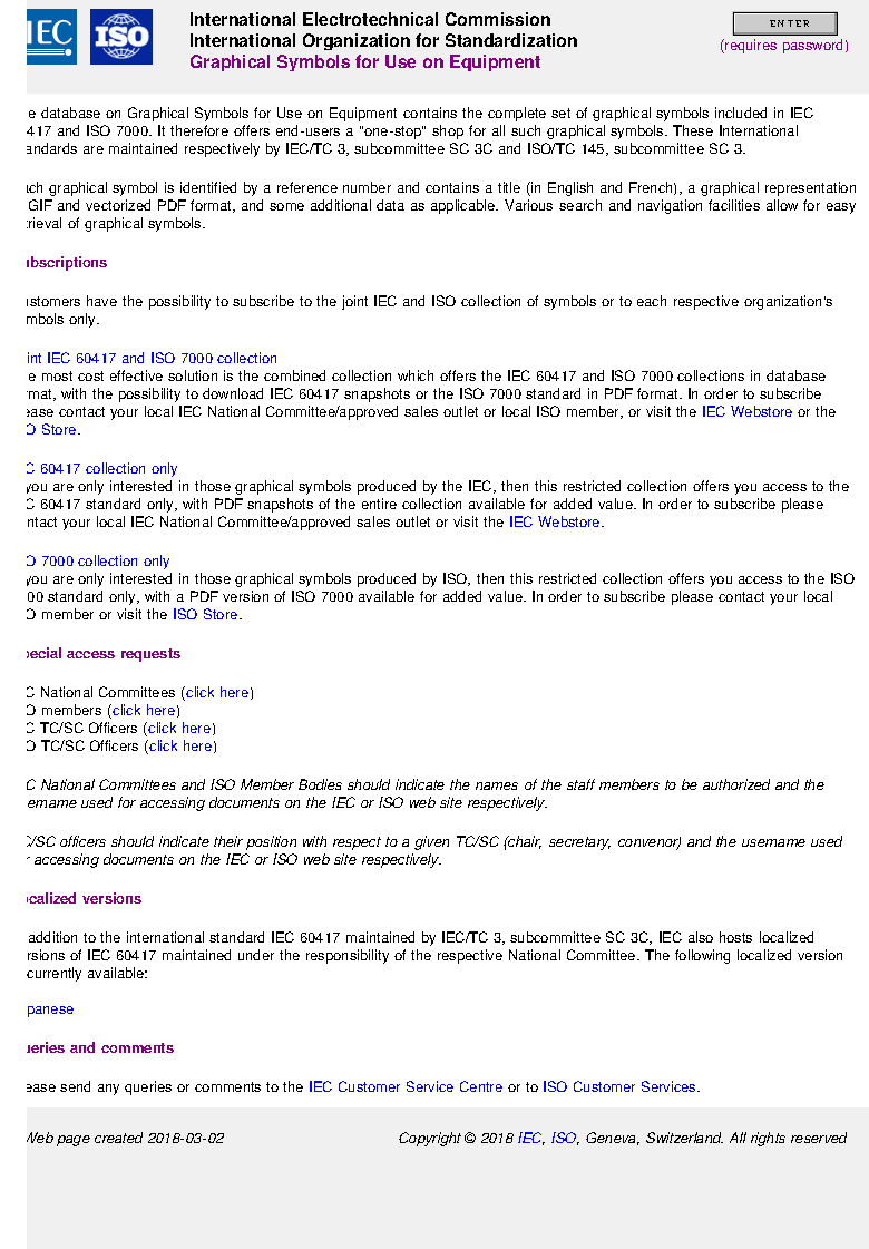 ISO/IEC SYMBOL:2025 DB Graphical symbols for use on equipment - 12-month subscription to regularly updated online database comprising all graphical symbols published in IEC 60417 and ISO 7000 Graphical symbols for use on equipment