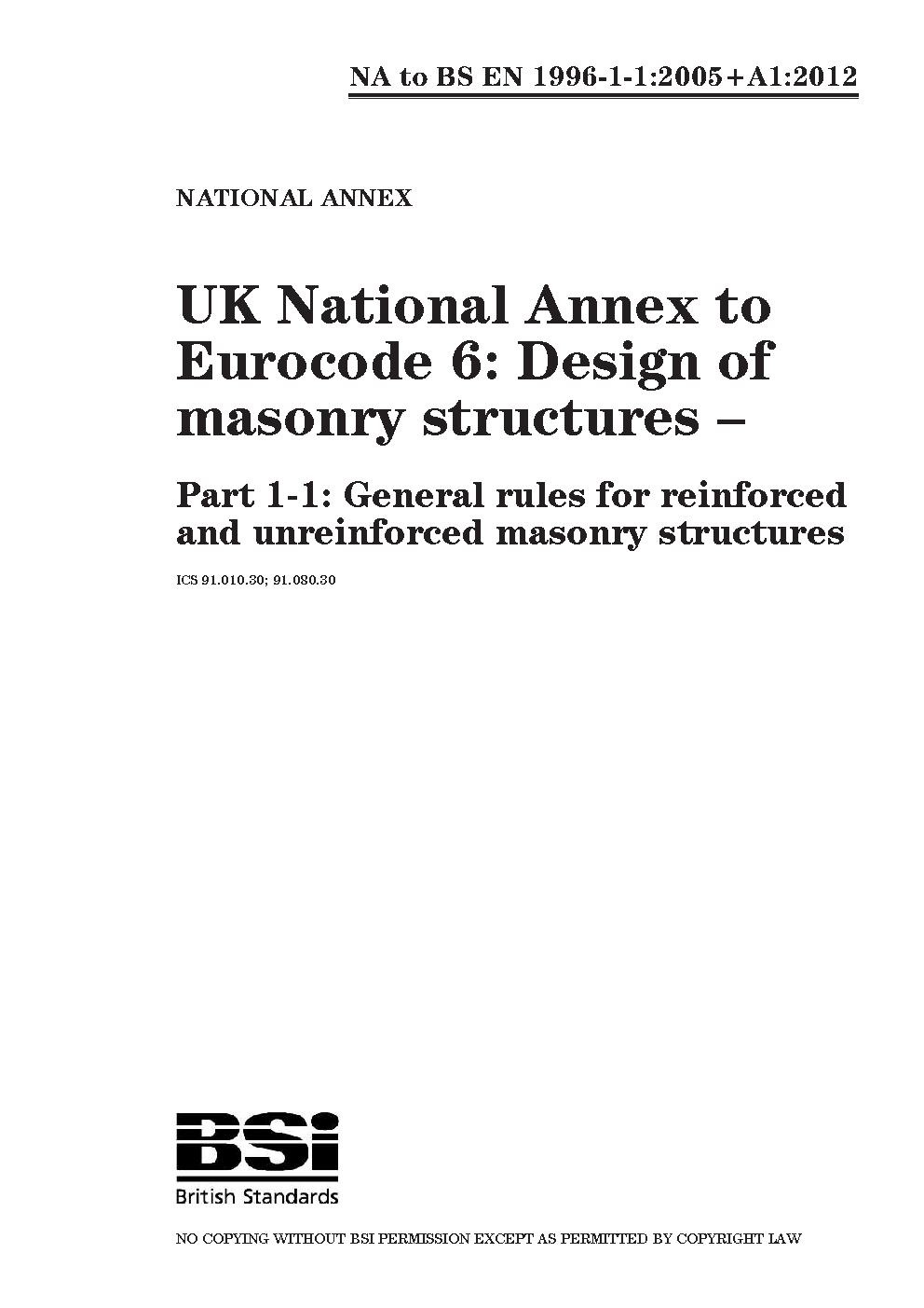 UK National Annex to Eurocode 6. Design of masonry structures General rules for reinforced and unreinforced