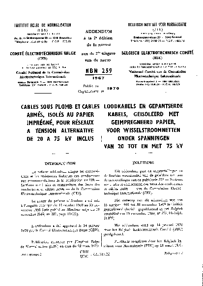 Cette norme est applicable aux câbles sous plomb et aux câbles armés, isolés au papier imprégné à champ radial, destinés aux lignes de transport et aux réseaux à fréquence industrielle pour des tensions nominales de 20 kV à 75 kV inclus.