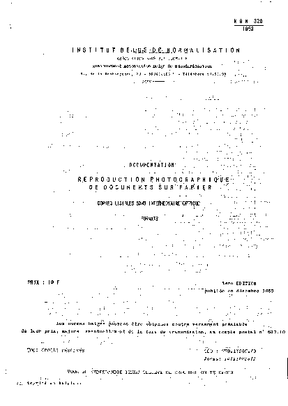 Documentation - Reproduction photographique de documents sur papier - Copies lisibles sans intermédiaire optique - Formats