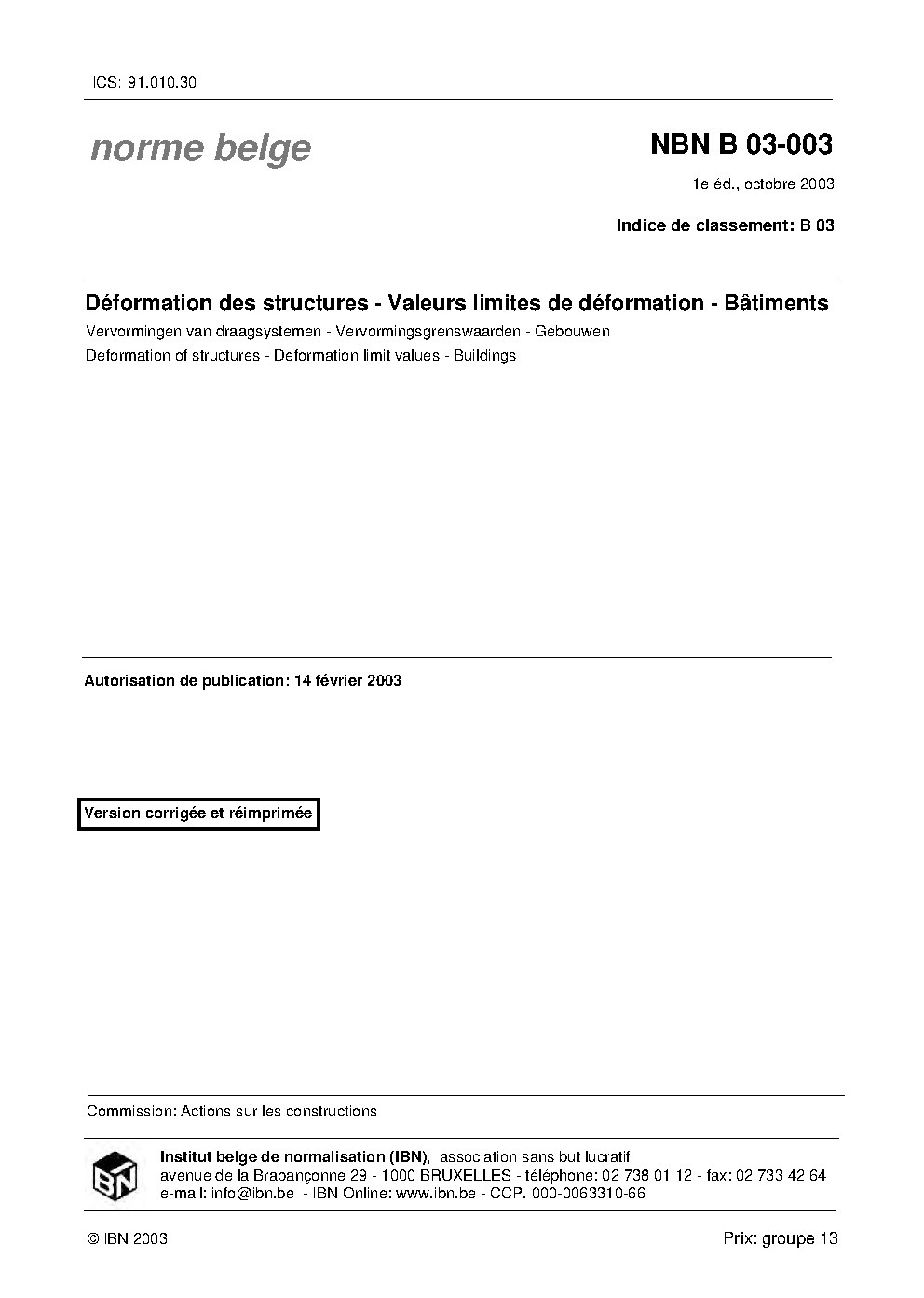 NBN B 03-003:2003