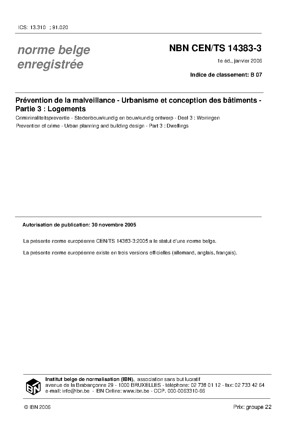 | Publisher | Bureau de Normalisation Belge (NBN) |