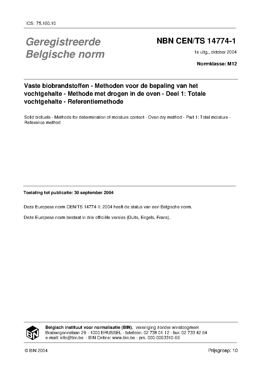 NBN CEN/TS 14774-1:2004