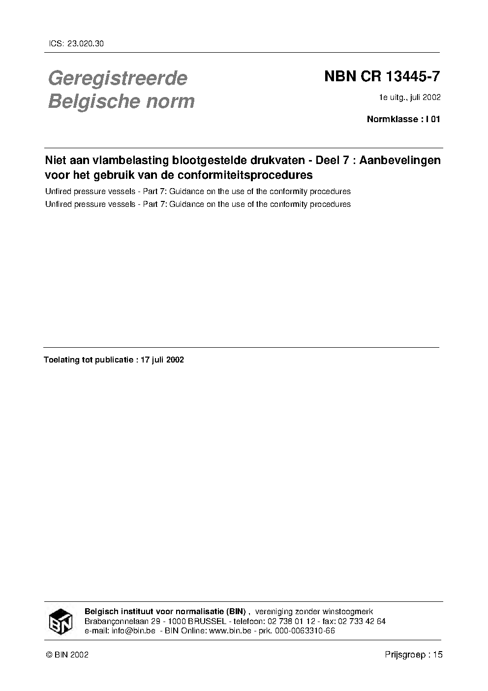 | Publisher | Bureau de Normalisation Belge (NBN) |