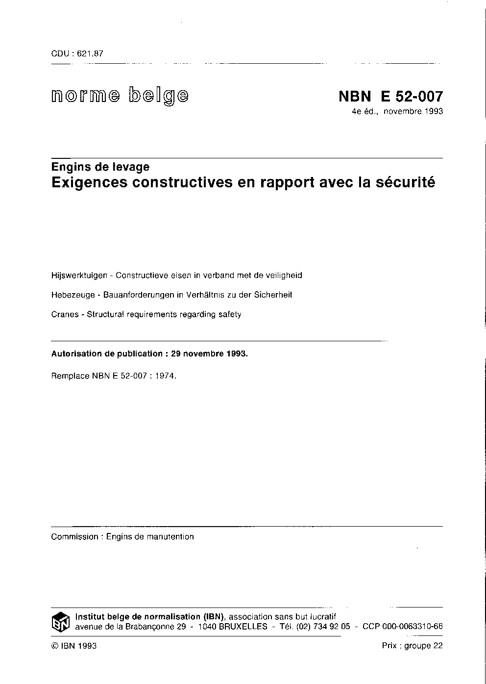 | Publisher | Bureau de Normalisation Belge (NBN) |