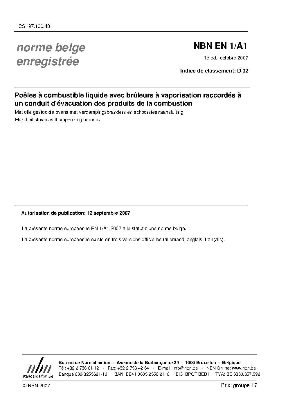 | Publisher | Bureau de Normalisation Belge (NBN) |