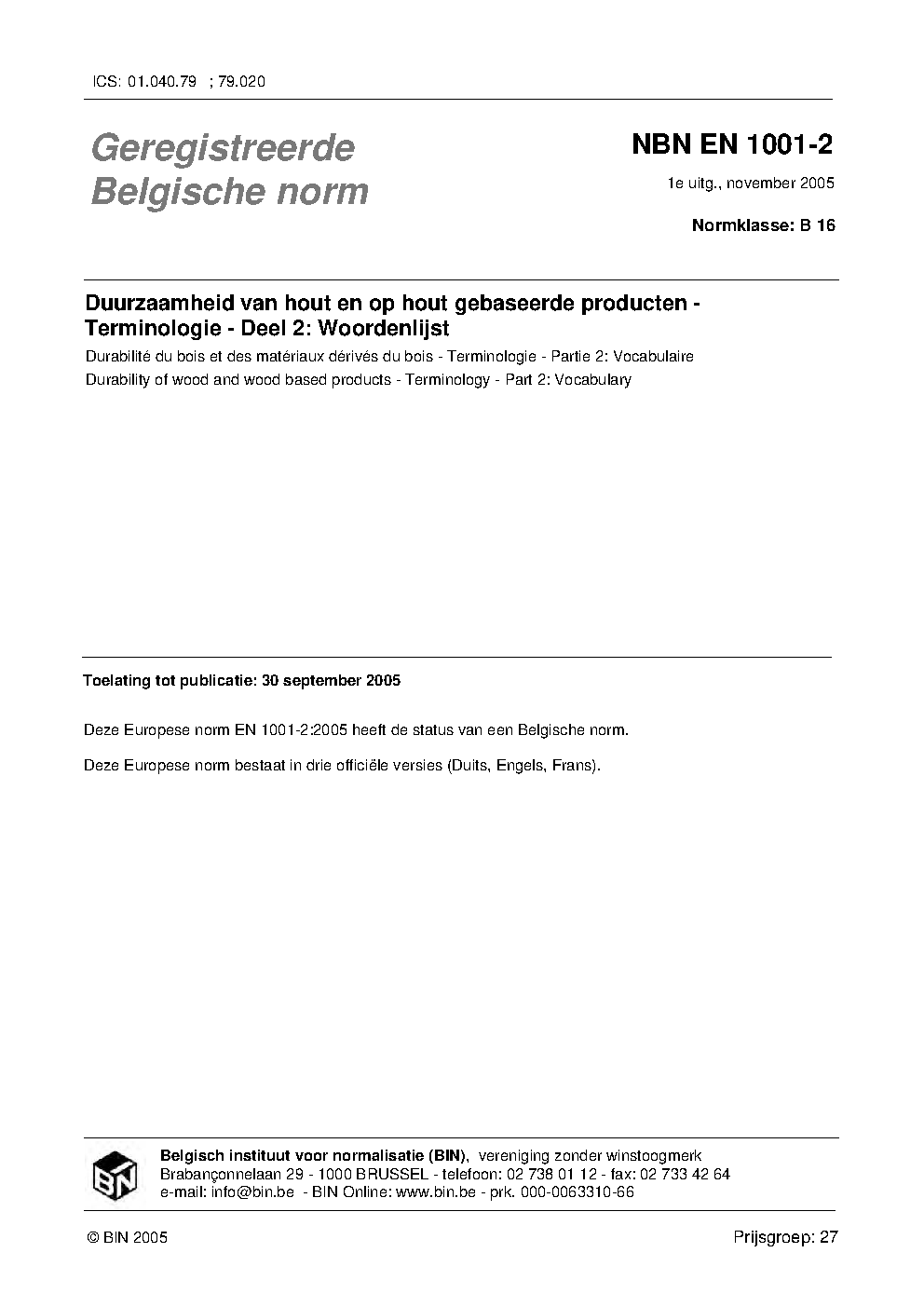 | Publisher | Bureau de Normalisation Belge (NBN) |
