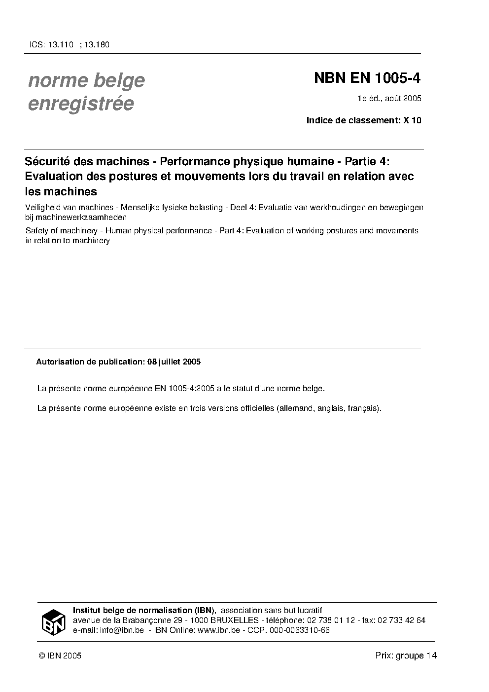| Publisher | Bureau de Normalisation Belge (NBN) |