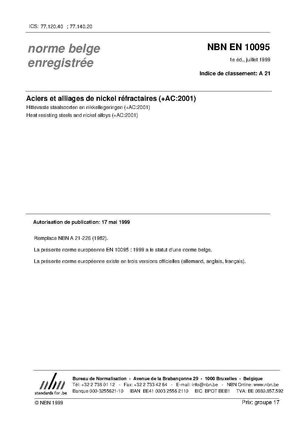 | Publisher | Bureau de Normalisation Belge (NBN) |