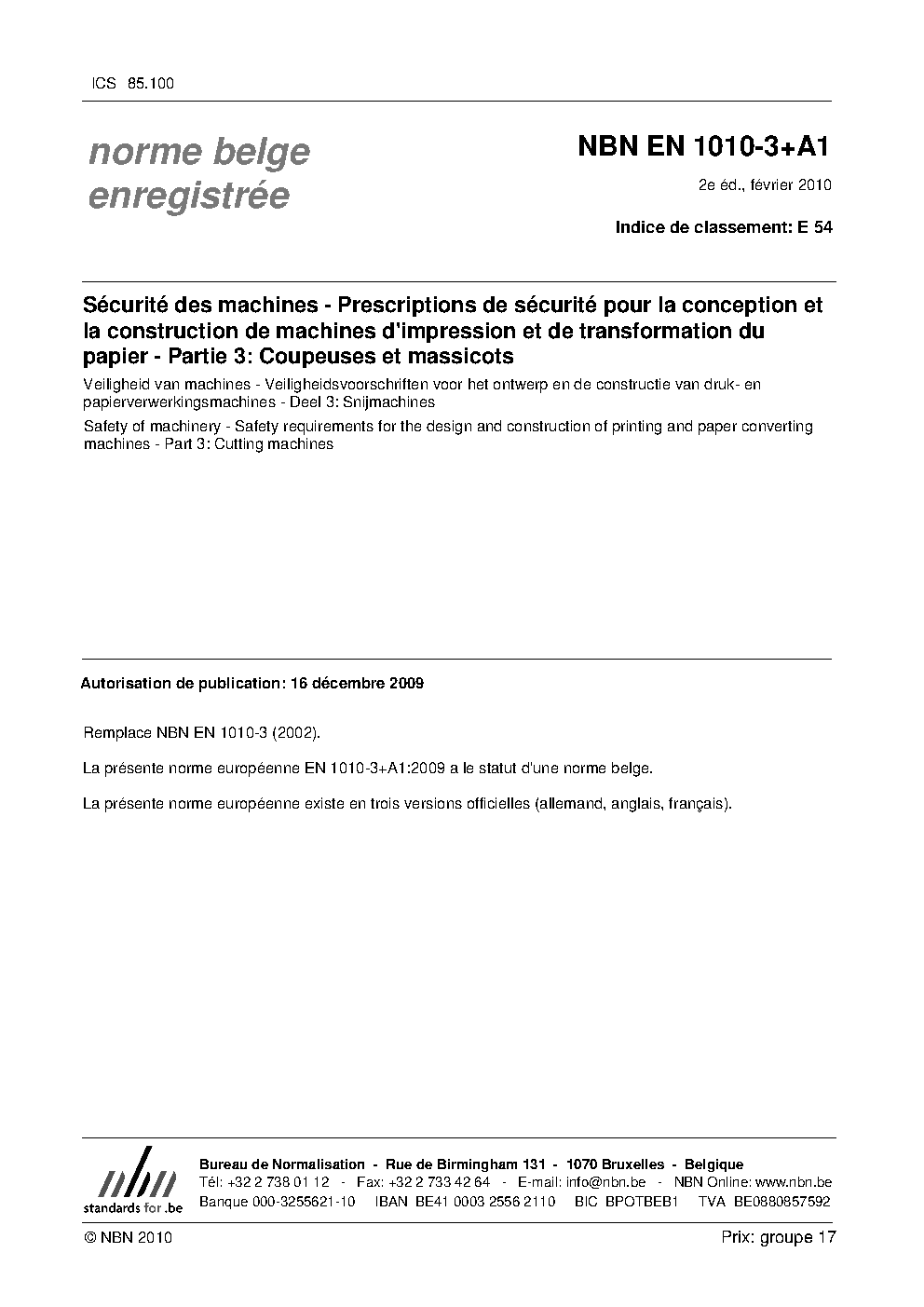 NBN EN 1010-3+A1:2010