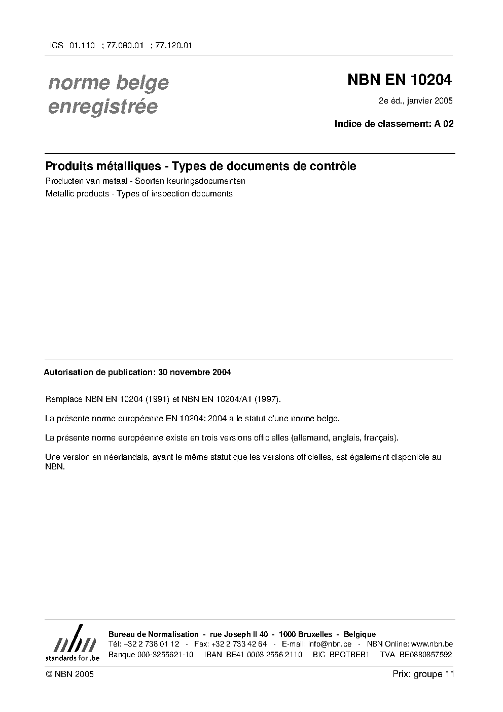 | Publisher | Bureau de Normalisation Belge (NBN) |