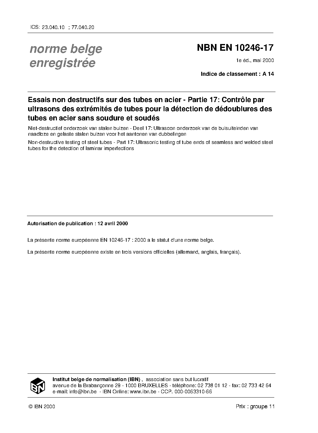 | Publisher | Bureau de Normalisation Belge (NBN) |