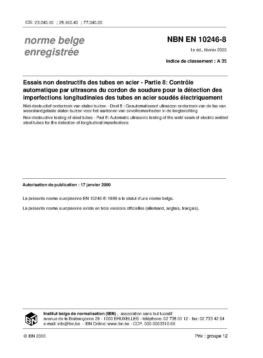 | Publisher | Bureau de Normalisation Belge (NBN) |