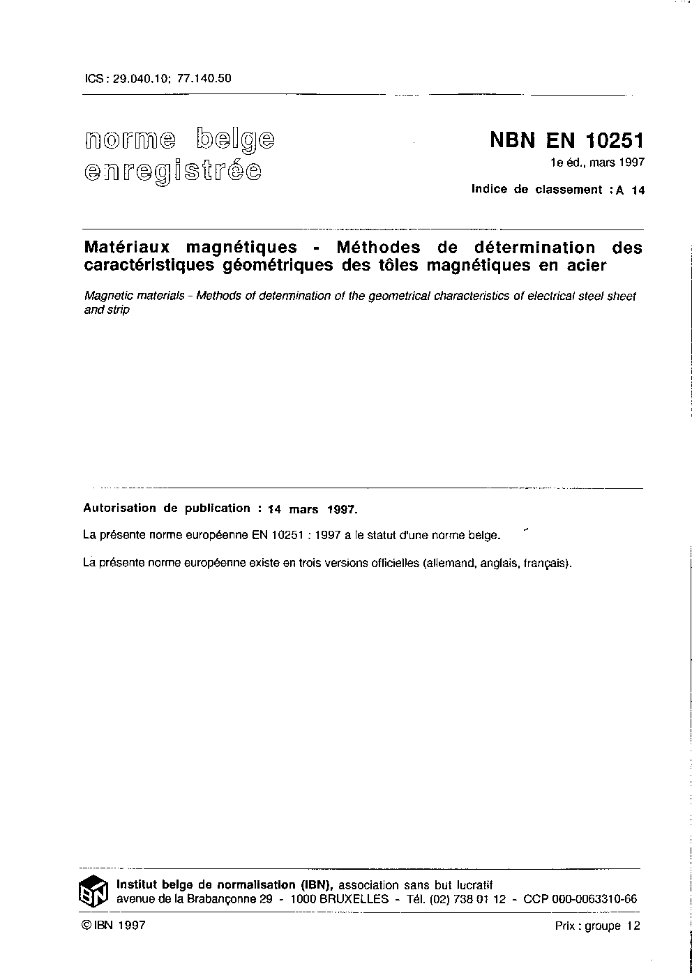 | Publisher | Bureau de Normalisation Belge (NBN) |