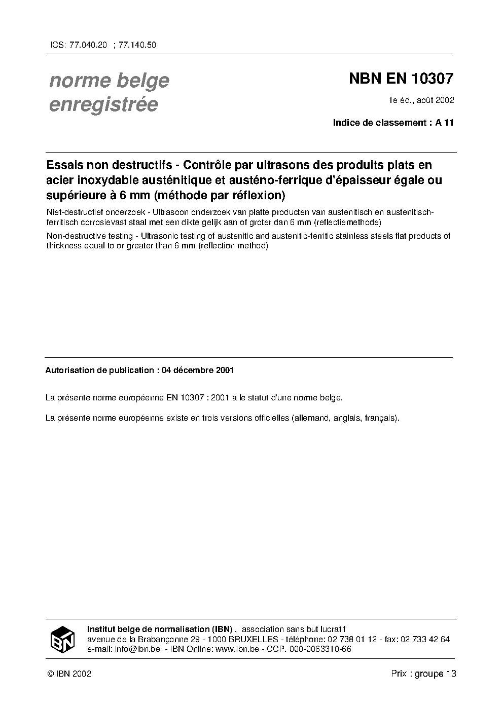 | Publisher | Bureau de Normalisation Belge (NBN) |