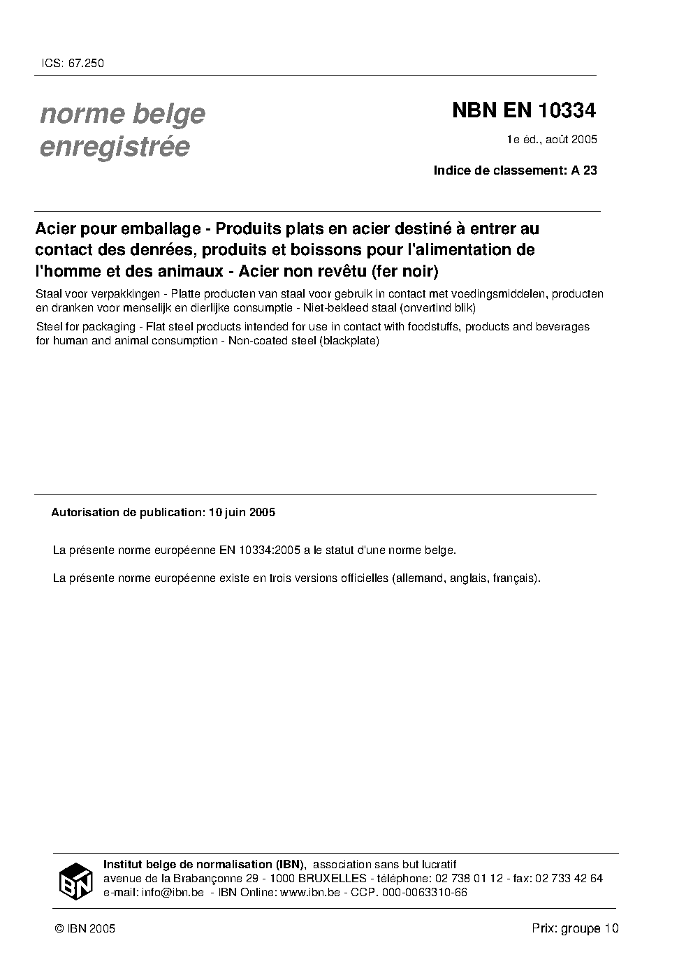 | Publisher | Bureau de Normalisation Belge (NBN) |