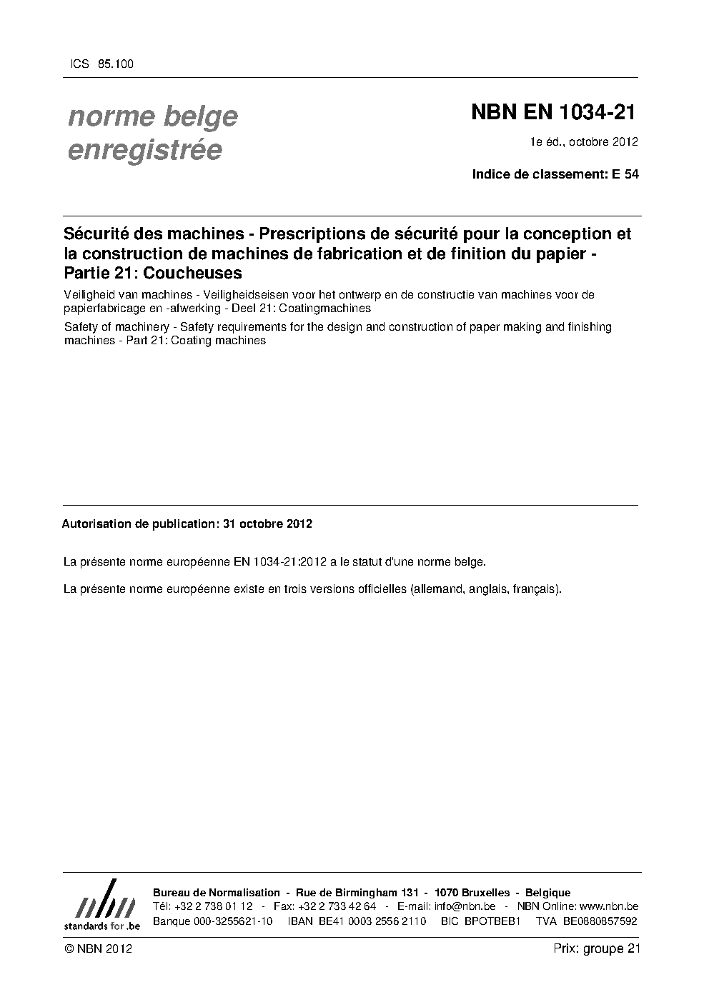 | Publisher | Bureau de Normalisation Belge (NBN) |