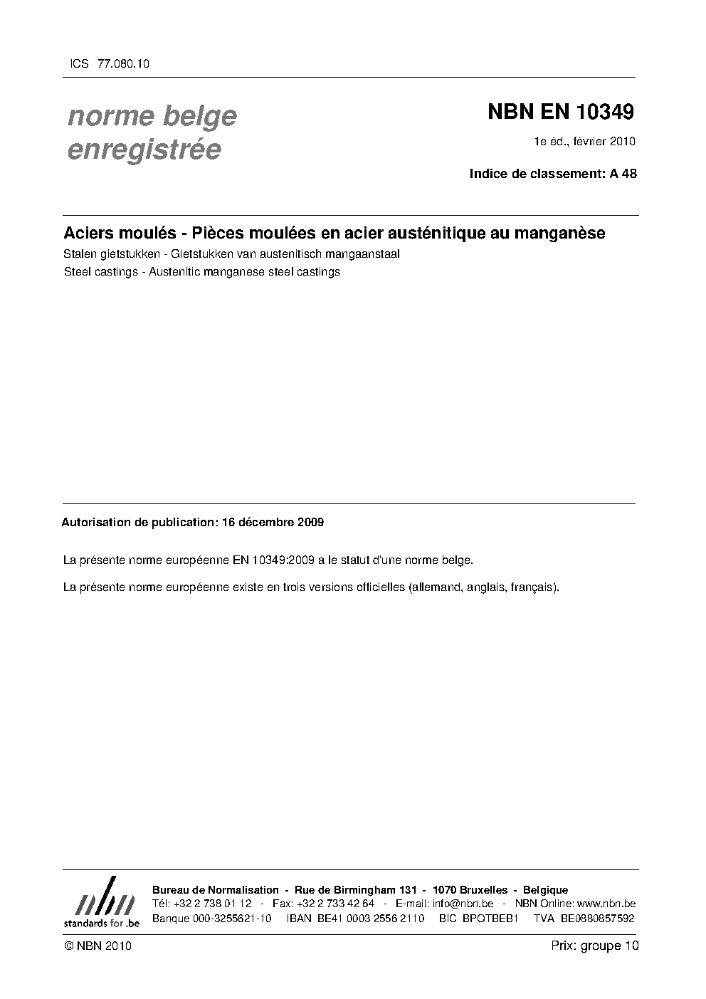 | Publisher | Bureau de Normalisation Belge (NBN) |