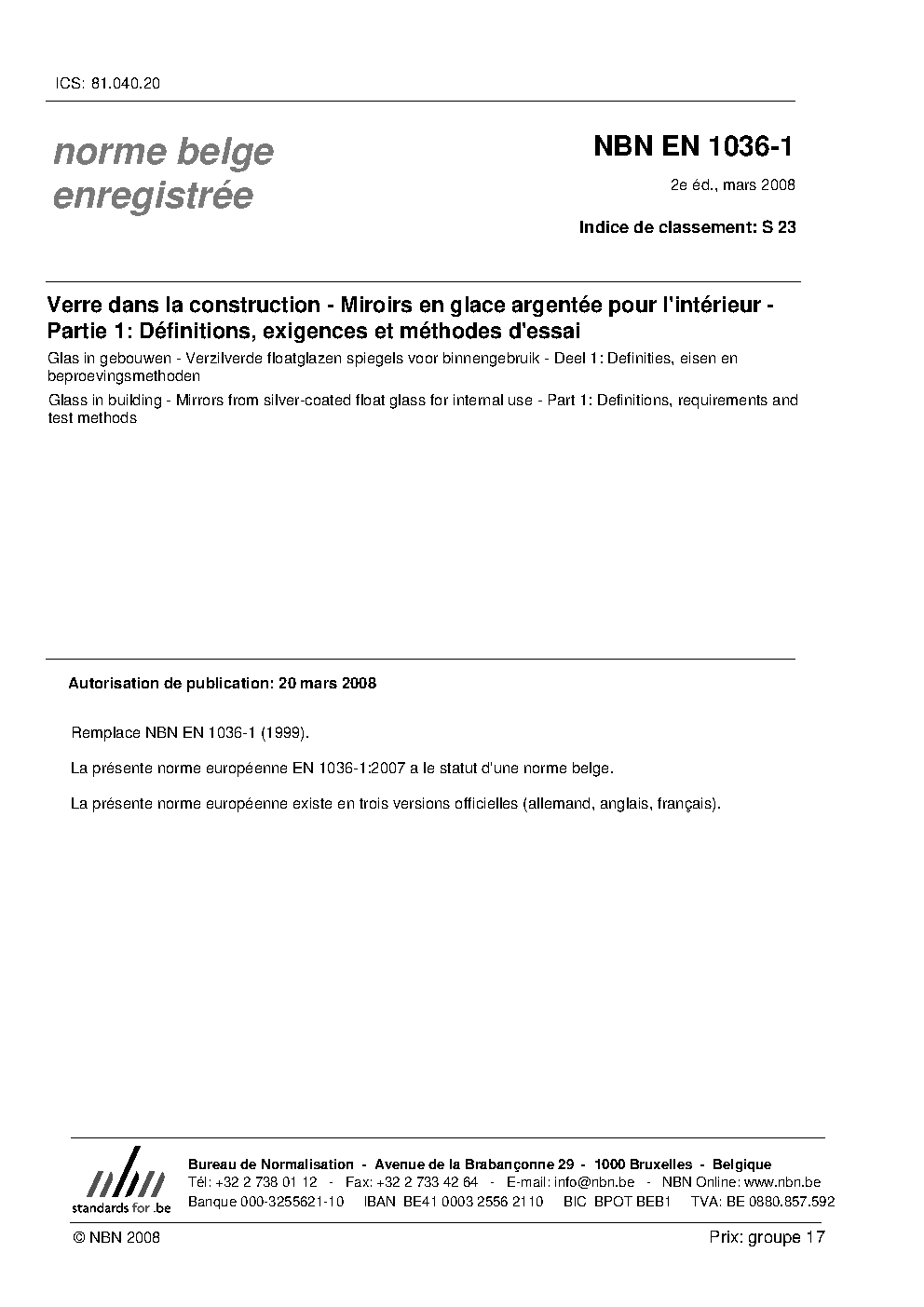 | Publisher | Bureau de Normalisation Belge (NBN) |