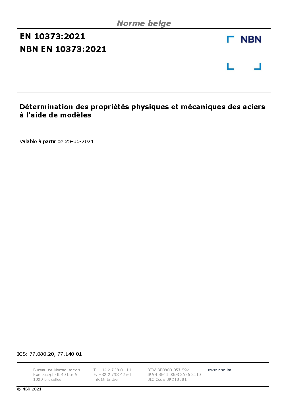 | Publisher | Bureau de Normalisation Belge (NBN) |