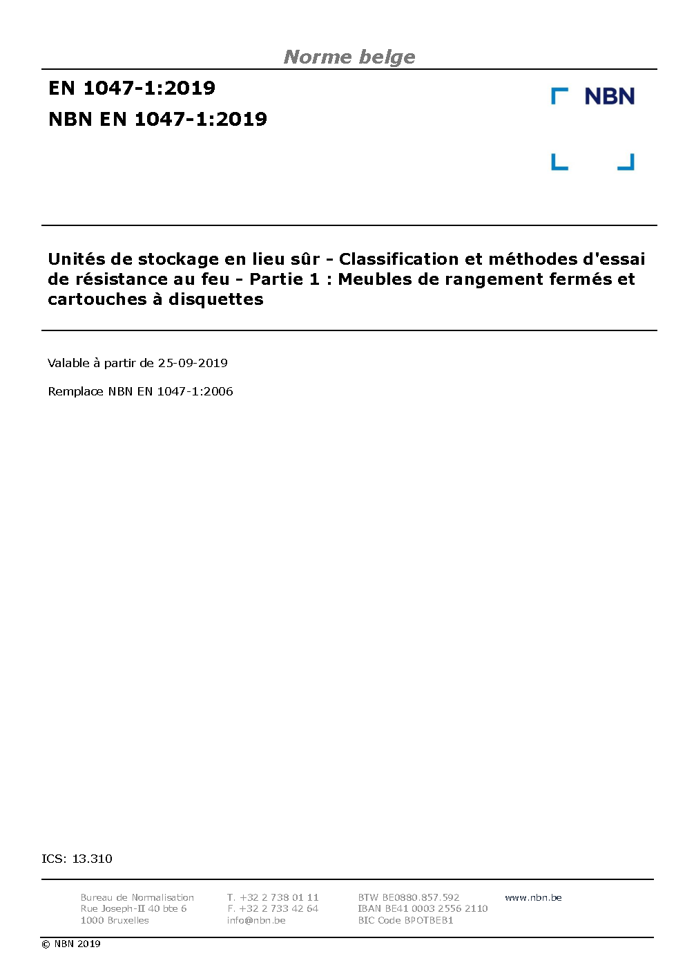| Publisher | Bureau de Normalisation Belge (NBN) |