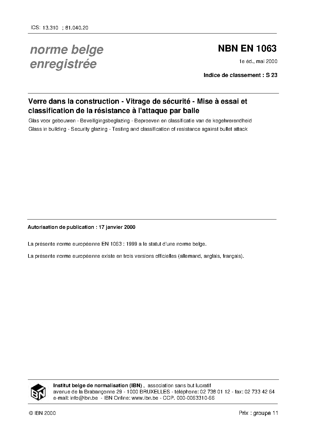 NBN EN 1063:2000