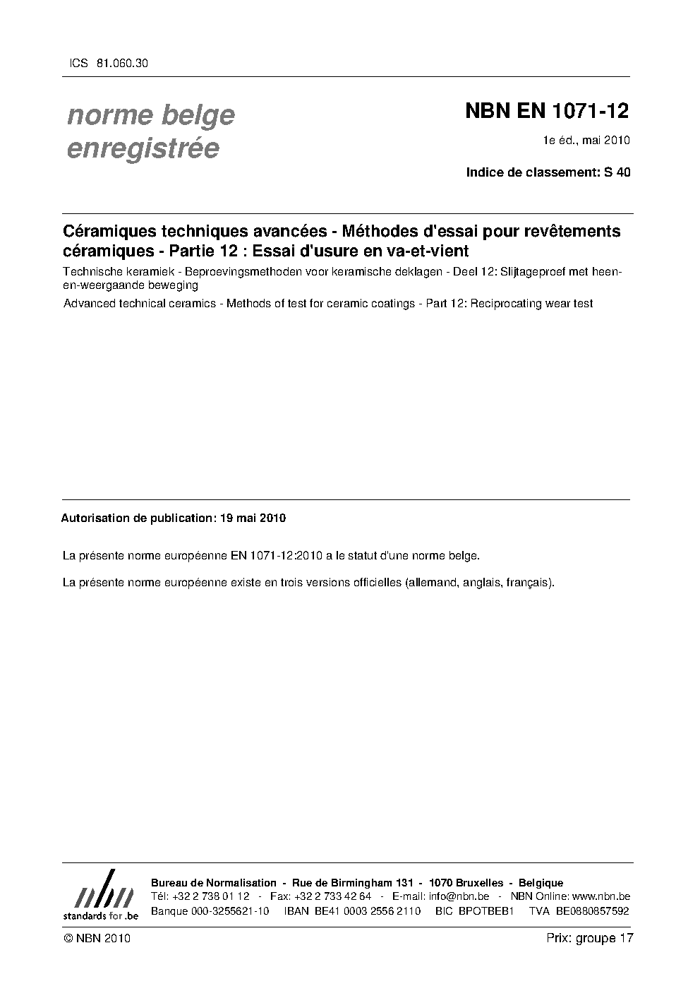 | Publisher | Bureau de Normalisation Belge (NBN) |