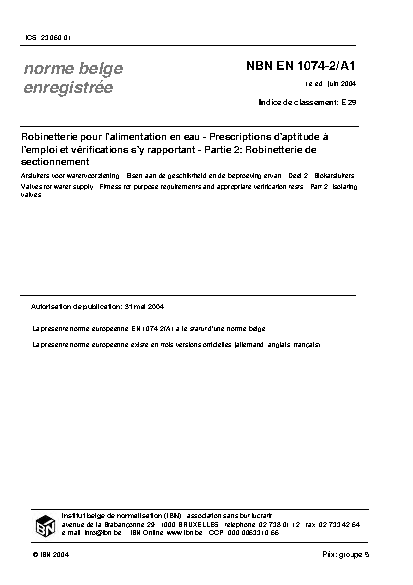 NBN EN 1074-2/A1:2004