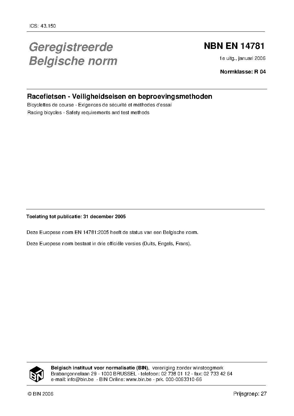| Publisher | Bureau de Normalisation Belge (NBN) |