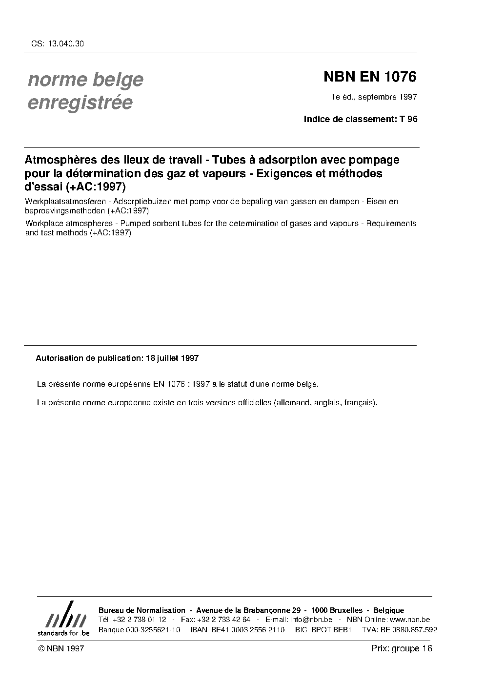 | Publisher | Bureau de Normalisation Belge (NBN) |
