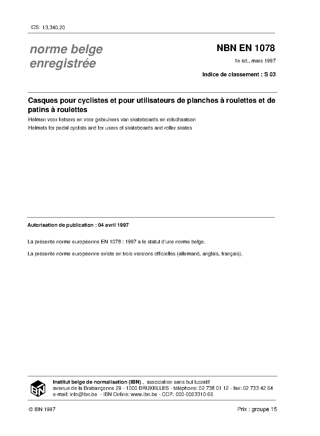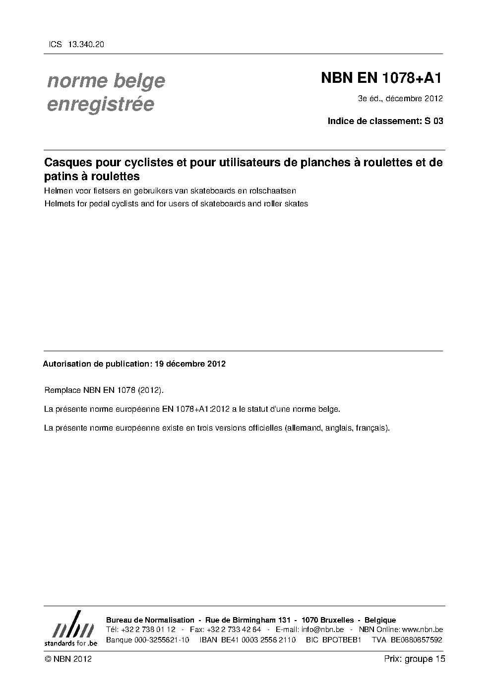 | Publisher | Bureau de Normalisation Belge (NBN) |
