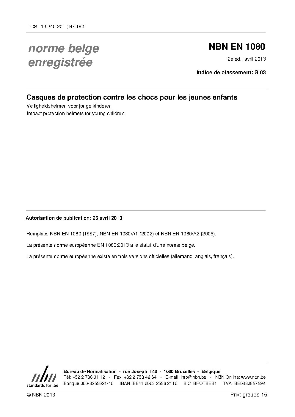 | Publisher | Bureau de Normalisation Belge (NBN) |