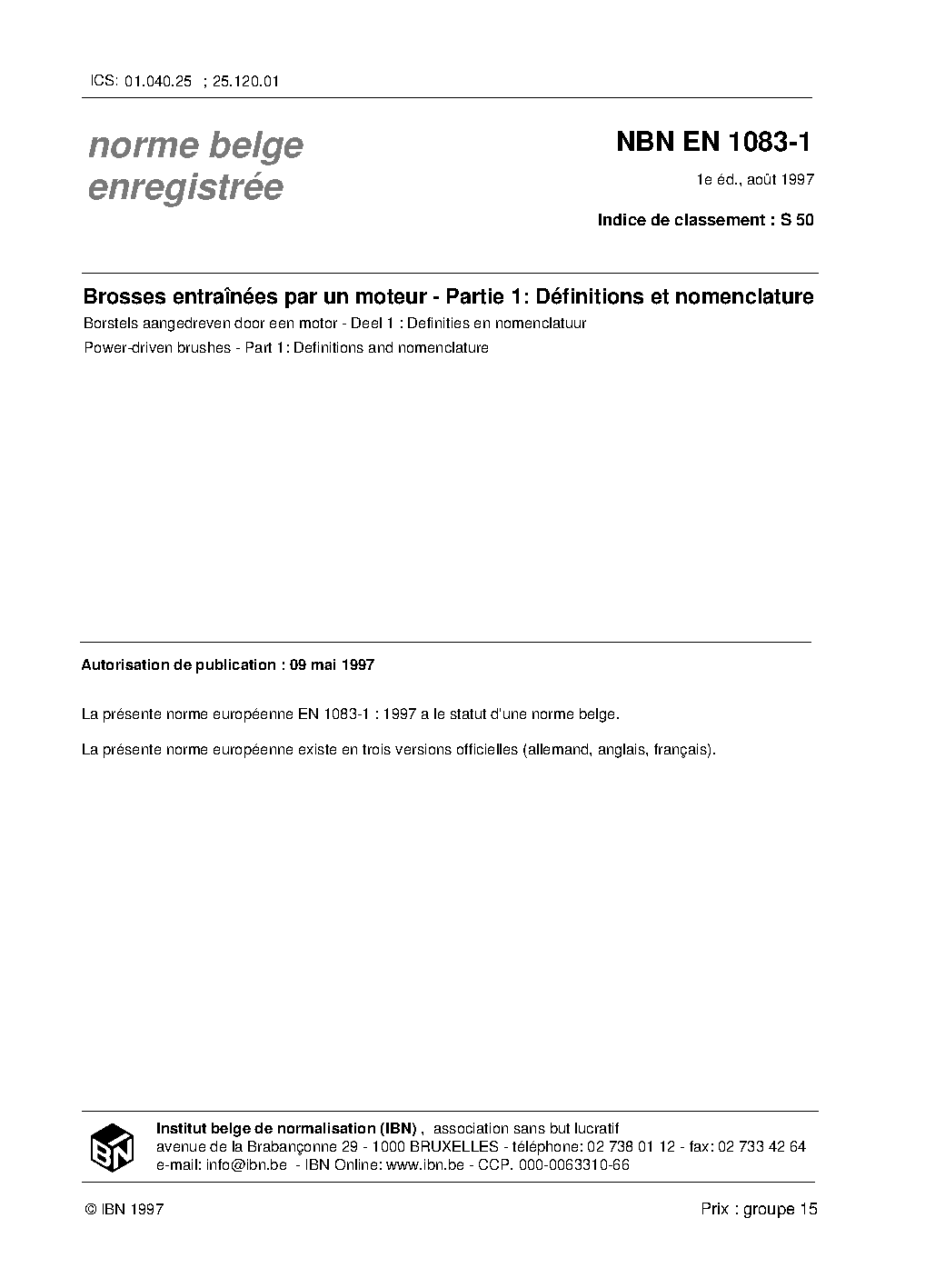 | Publisher | Bureau de Normalisation Belge (NBN) |