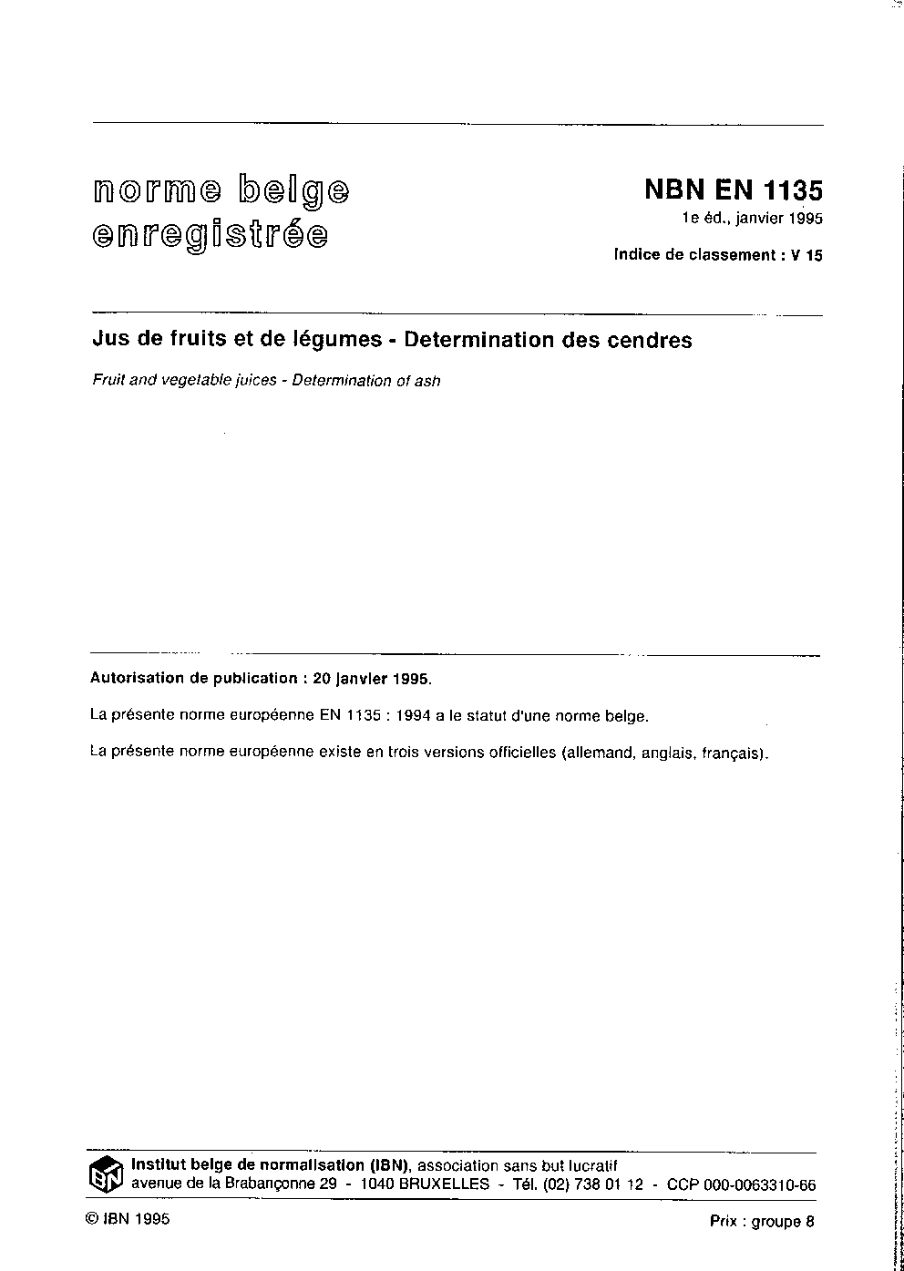 | Publisher | Bureau de Normalisation Belge (NBN) |