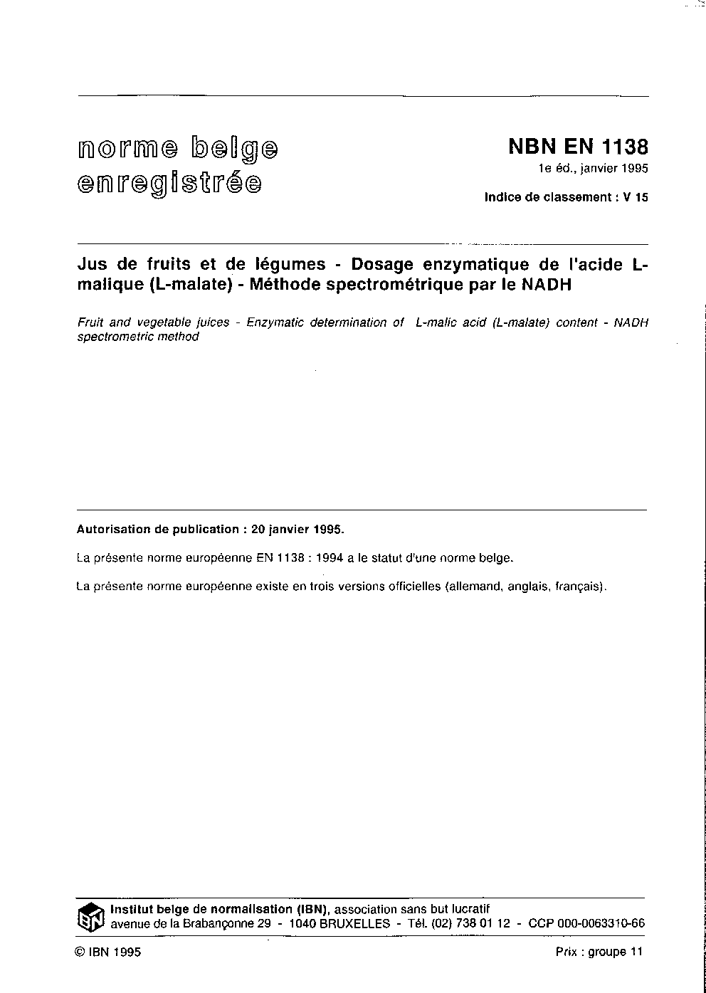 | Publisher | Bureau de Normalisation Belge (NBN) |