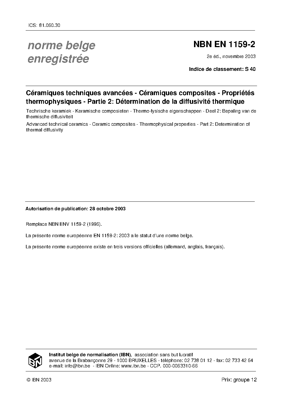 | Publisher | Bureau de Normalisation Belge (NBN) |