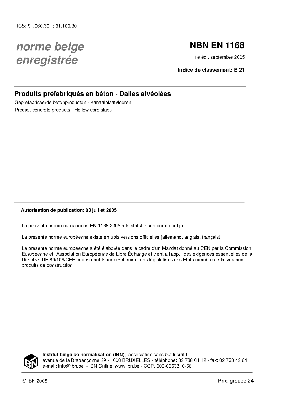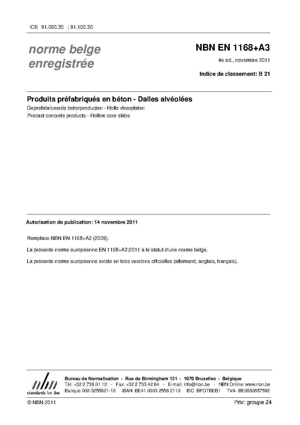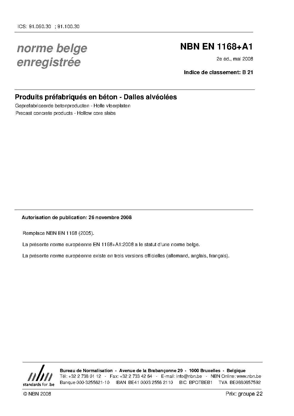 | Publisher | Bureau de Normalisation Belge (NBN) |
