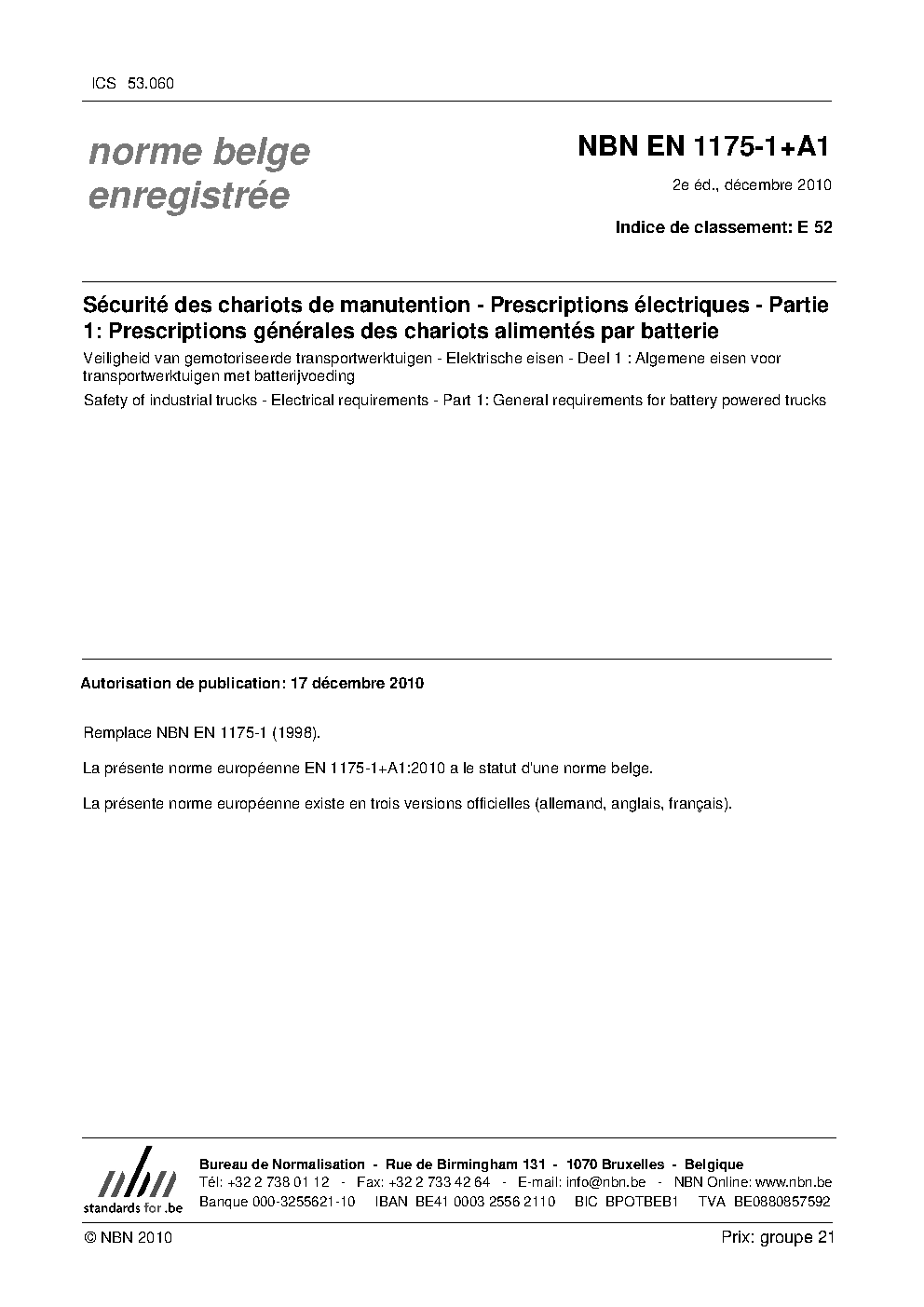 | Publisher | Bureau de Normalisation Belge (NBN) |