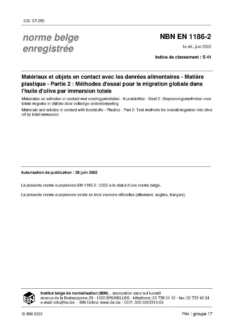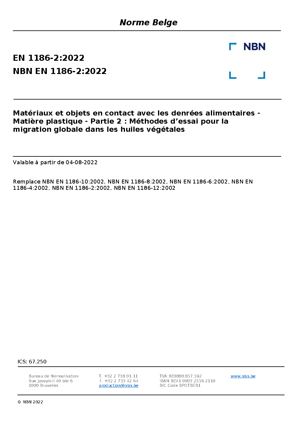 | Publisher | Bureau de Normalisation Belge (NBN) |