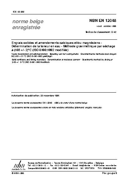 | Publisher | Bureau de Normalisation Belge (NBN) |