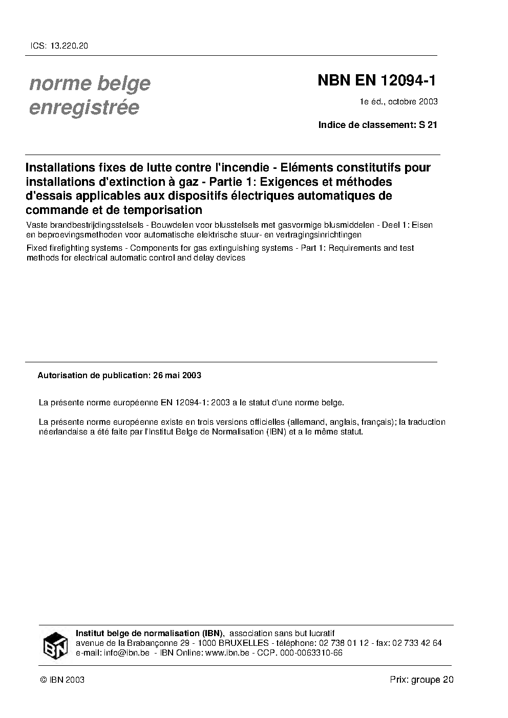 | Publisher | Bureau de Normalisation Belge (NBN) |
